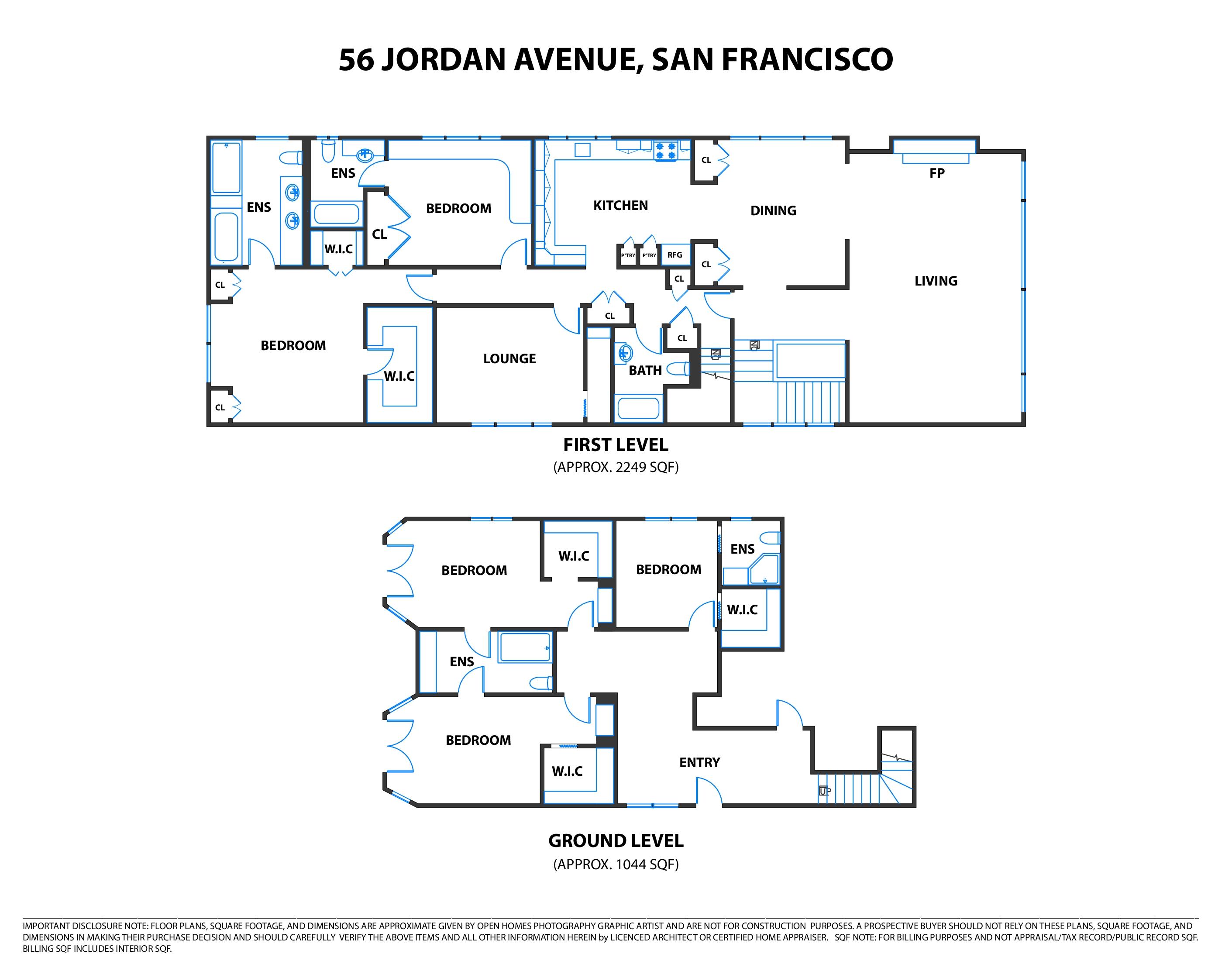 Whether seeking refuge for you and your family during a remodel or searching for a luxury home rental, 56 Jordan Avenue offers a beautiful getaway in one of San Francisco’s finest neighborhoods: Jordan Park. This spacious Mid-Century Modern residence features six comfortable bedrooms, of which five are ensuite. The chic modernist entry with stone steps to the main level boasts soaring vaulted ceilings in an oversized living room with floor to ceiling windows that flow onto a terrace with lush outlooks of greenery. The formal dining room which features built-in cabinetry and a wet-bar; directly communicates with the large chef's kitchen. Additional rooms on the main level include a fabulous master suite with two walk-in closets, a media room, a home office with built-in desk; the latter two of which can double as bedrooms. The lower level features a home office alcove (with three workstations), three bedrooms: one of which is a suite and the other two of which open directly to the east-facing garden and share a Jack & Jill bathroom. The attached two car garage includes a wine refrigerator and a washer and dryer. The west carport/driveway allows for off-street parking up to four additional vehicles.